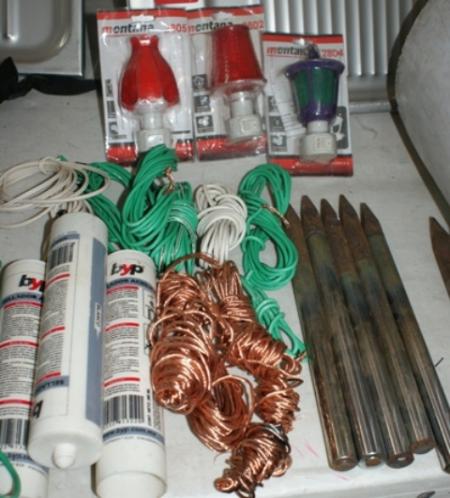 * 18 rollos de cables de distintas medidas y peso en color verde y blanco.