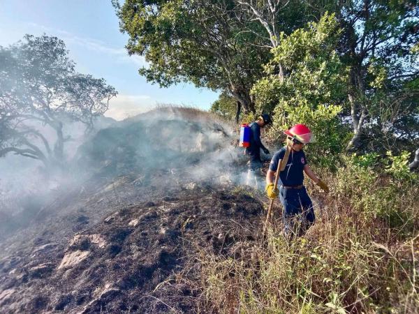 Al arribar a la zona, el personal se desplegó en puntos estratégicos para comenzar a combatir el fuego en las faldas del cerro y evitar que las llamas llegaran a las viviendas.