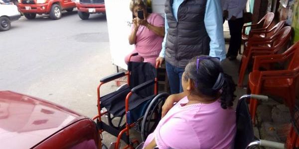 Una mujer de la tercera edad, vecina de la colonia El Rodeo recibió una silla de ruedas este lunes por parte del Presidente Municipal del PRI, Carlos Saldate, quien se la entregó personalmente.