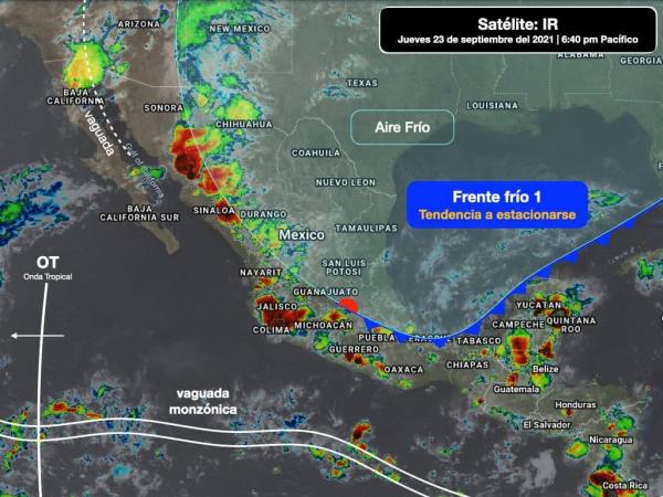El centro meteorológico del pacifico informó que aumentarán las lluvias fuertes en Sinaloa.(sur), Nayarit, Jalisco (costas-sierras), Colima, Michoacán, Guerrero, Oaxaca, Chiapas, Veracruz, Tabasco, Campeche, Morelia, Puebla, Hidalgo, Querétaro(norte). Se prevé el Frente FrÃo 1 se torne es...