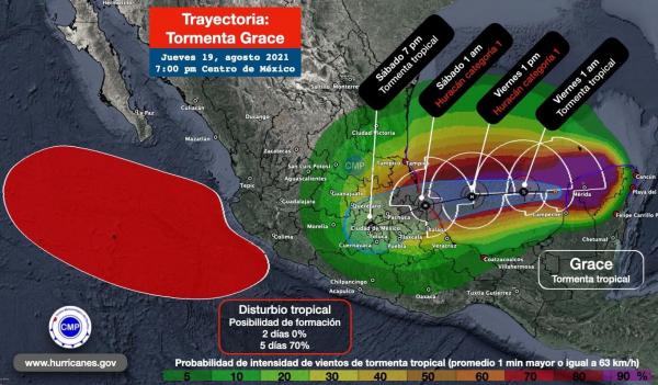 Se prevé que Grace se fortalezca a huracán categorÃa 1 durante la madrugada del viernes, rumbo a impactar la costa norte-central de Veracruz, además con efectos importantes en la costa sur de Tamaulipas. A las 7:00 pm hora del centro de México, se localizó a 20.7º norte y 91.0º oeste a 10...