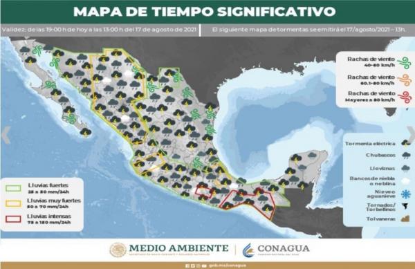 La Comisión Nacional del Agua (Conagua) dio a conocer el pronóstico de lluvias para hoy martes 17 de agosto de 2021. Pronosticó intervalos de chubascos con lluvias puntuales fuertes (25.1 a 50.0 mm) en Sonora, Sinaloa, Nayarit, Ciudad de México, Morelos, Tlaxcala, Puebla y Veracruz. Ademá...