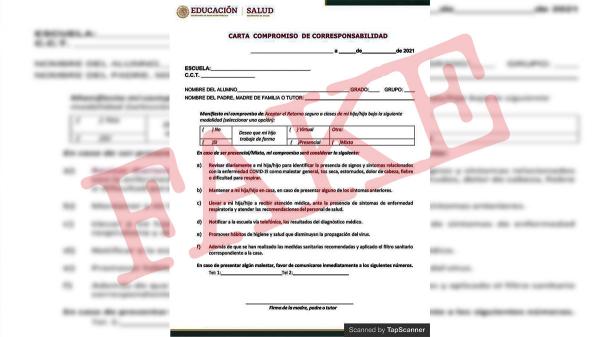 La Secretaría de Educación Pública (SEP) alertó a padres de familia sobre una falsa carta compromiso que circula en redes sociales y algunos medios de comunicación, por el regreso a clases presenciales. Para este nuevo ciclo escolar 2021-2022, le SEP pidió distinguir el documento origin...