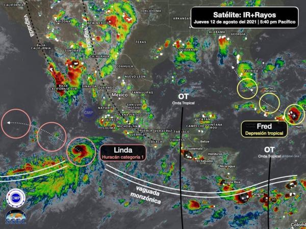 El Servicio Meteorológico Nacional (SMN) informó que la tormenta tropical linda se intensificó a huracán categorÃa 1 en escala de Saffir Simpson la mañana de hoy, 12 de agosto de 2021, en costas del PacÃfico mexicano. El huracán Linda se encuentra a 590 kilómetros del suroeste de Manzani...