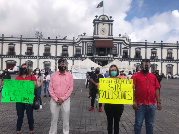 Este lunes, integrantes de la Federación de Estudiantes de la Universidad Autónoma de Nayarit (FEUAN), se manifestaron frente a palacio de gobierno para exigir que se abra un nuevo campus de medicina en la zona de Las Canteras. En entrevista, el coordinador de la FEUAN, Juan Carlos Rojas, indic...