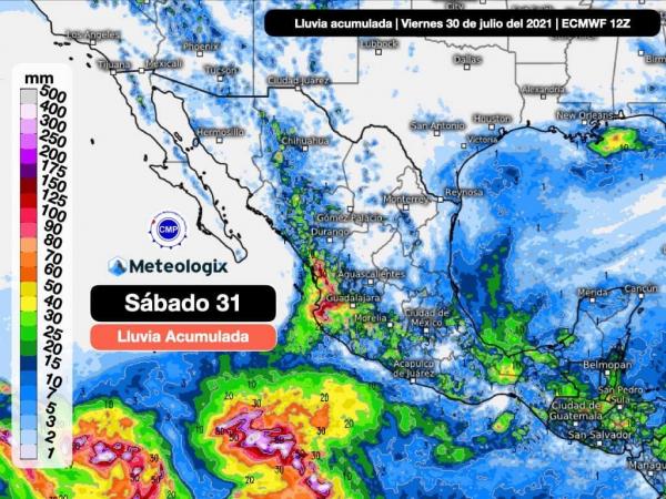 Se prevén chubascos y tormentas fuertes a muy fuertes para este dÃa en Sinaloa, Nayarit, Jalisco, Colima y Michoacán. Chubascos y tormentas noroeste, norte, centro, bajÃo, sur y sureste. Asà como tormentas severas y posibles inundaciones. El paso de dos onda tropicales sobre el sur y o...