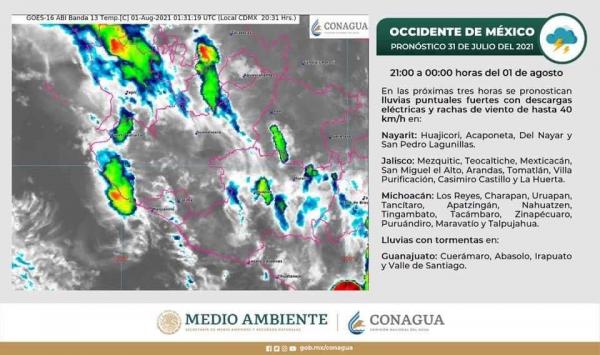 Este noche de viernes, madrugada y mañana de sábado se prevén chubascos y tormentas fuertes a muy fuertes en Sinaloa, Nayarit, Jalisco, Colima y Michoacán; Chubascos y tormentas noroeste, norte, centro, bajÃo sur y sureste. PRECAUCIÓN: Tormentas severas y posibles inundaciones. El paso de...