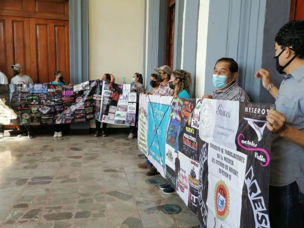 La mañana de este lunes un grupo de varias personas dueños de negocios, en especÃfico para eventos sociales (banquetes, mobiliario, sonido, decoración, salón de eventos, entre otros) se manifestaron a las afueras de palacio de gobierno en el centro histórico de Tepic, para pedir a las autorida...