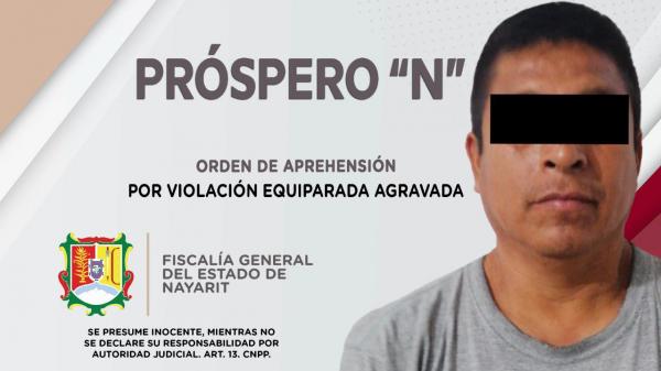 Elementos de la Agencia de Investigación Criminal de Nayarit ejecutaron una orden de aprehensión en el municipio de BahÃa de Banderas contra Próspero "N". Por su probable participación en hechos que según la ley configuran el delito de violación equiparada agravada, cometido en perjuicio d...