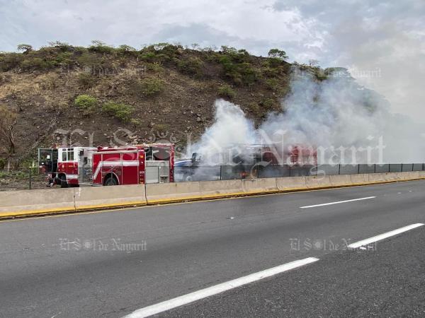 La mañana de este jueves se registró el incendio de un tráiler sobre la autopista Tepic - Guadalajara, a la altura del kilómetro 106, en el municipio de Jala. Se trata de un tráiler en color azul que transportaba maÃz, el cual comenzó a incendiarse, generando fuertes llamas y grandes colum...