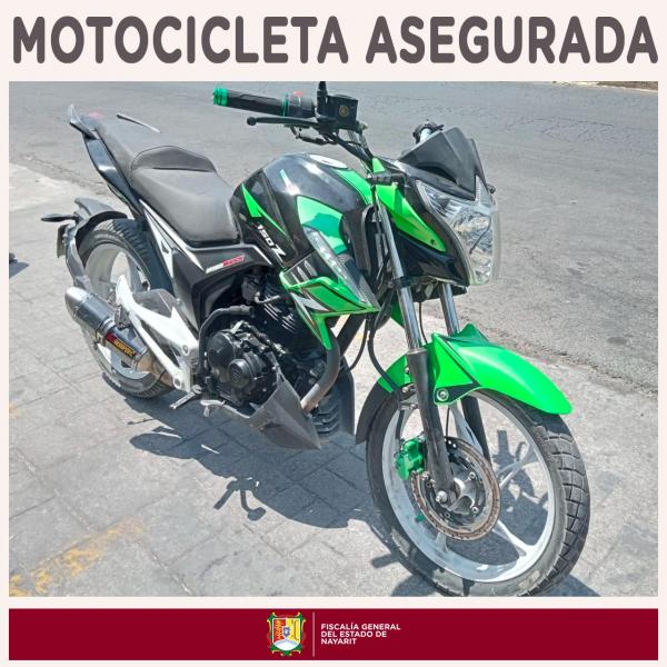 Mediante un operativo de búsqueda y recuperación de vehÃculos con reporte de robo, elementos de la Comandancia de Robo de VehÃculos aseguraron una motocicleta en esta ciudad, la cual cuenta con reporte de robo vigente. La unidad es de la marca Italika, lÃnea 150-Z, colores verde y negro, mo...