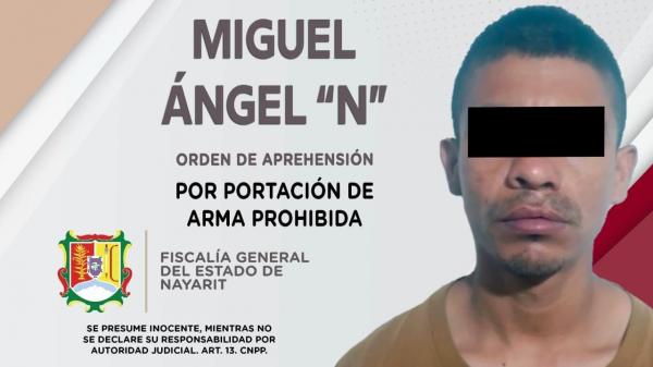 Elementos de la Agencia de Investigación Criminal ejecutaron una orden de aprehensión en contra de un masculino de nombre Miguel Ángel N. Lo anterior, por su presunta participación en hechos que según apreciación de la ley encuadran el delito de portación de arma prohibida, cometido en agr...