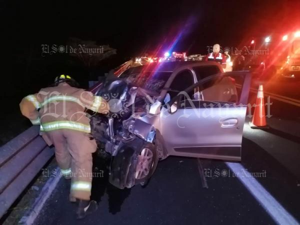 La noche de este lunes se registró un accidente automovilÃstico en la autopista Tepic - San Blas, a la altura del túnel. Tras recibir el reporte, elementos de Protección Ciudadana y Bomberos del estado, acudieron de manera inmediata al lugar localizando un vehÃculo de la marca Renault, en co...