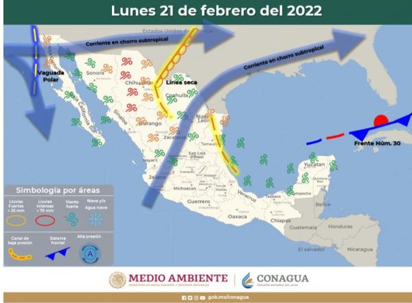 Se prevén intensas rachas de viento en el noroeste y norte del paÃs y un aumento en las temperaturas diurnas (del lunes 21 al jueves 24 de febrero). Una lÃnea seca sobre el norte de Coahuila ocasionará lluvias con chubascos dispersos acompañados de descargas eléctricas en dicho estado y fue...