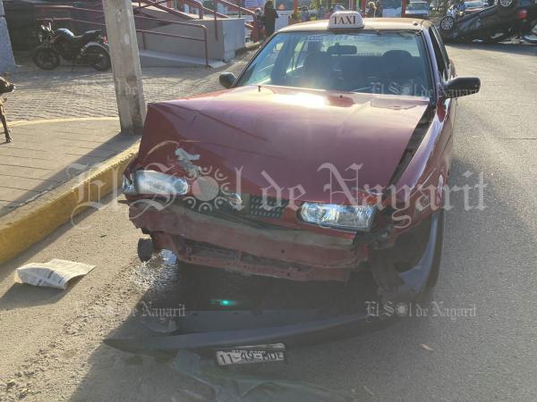 Se registró un aparatoso accidente la mañana de este viernes sobre la avenida Insurgentes en el cruce con la calle BucerÃas en la ciudad de Tepic. Se vieron involucrados un vehÃculo de la marca Volkswagen tipo gol en color gris oscuro con placas RGR-24-64 y un taxi tipo Tsuru en color rojo co...