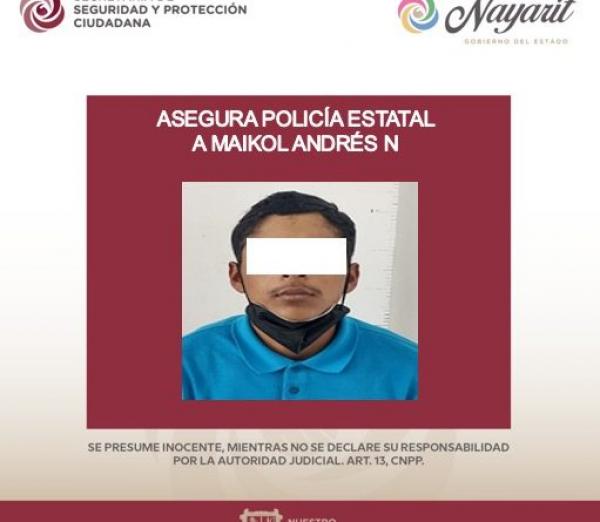 La SecretarÃa de Seguridad y Protección Ciudadana asegura a una (1) persona, esto durante recorridos de vigilancia y prevención al delito implementados por elementos de la PolicÃa Estatal en la ciudad de Tepic. Como resultado de los trabajos realizados fue asegurado Maikol Andrés ?N? ?N?, de...