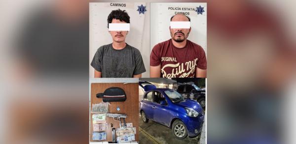 Tepic, Nayarit; 6 de octubre de 2021.- La SecretarÃa de Seguridad y Protección Ciudadana a través de la PolicÃa Estatal durante recorridos de vigilancia y prevención al delito aseguraron a dos personas de sexo masculino con posesión de un arma de fuego, narcóticos y un vehÃculo sin reporte d...