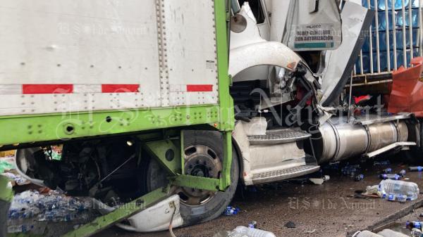 Se registró un aparatoso accidente la mañana de este viernes en la autopista Tepic - Villa Unión con sentido hacia Mazatlán, antes de llegar a la caseta de Trapichillo. Según el reporte, un tráiler con tanque cisterna que llevaba una carga de sulfato de magnesio, se habrÃa quedado sin fren...