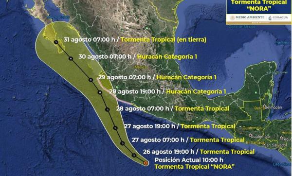 Se formó la tormenta tropical "Nora" este jueves a partir de la depresión tropical Catorce-E en el Océano PacÃfico, según informó el Servicio Nacional de Huracanes de Estados Unidos. Según el pronóstico, para el próximo domingo la tormenta ese convertirÃa en huracán 1, y estarÃa afect...