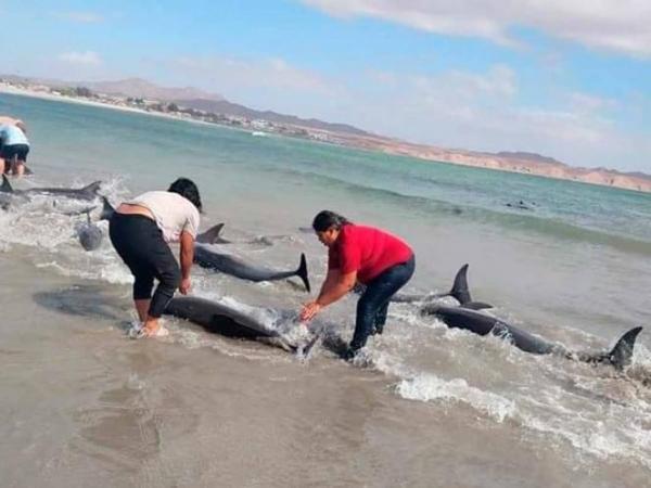 Alrededor de 30 delfines fueron rescatados en Puerto Lobos, Sonora, por la la comunidad pesquera. Los delfines habrÃan quedado varados en la playa al medio dÃa de este sábado, por lo que de manera inmediata, el grupo de pescadores dio inicio al rescate, para que los ejemplares regresaran al ma...