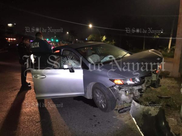 Un brutal choque se registró esta noche sobre el Boulevard Tepic-Xalisco, donde un vehÃculo Honda Civic se vio involucrado. Los primeros reportes indican que la unidad con placas RGK-15-00 del Estado de Nayarit , era conducida por un joven, quien viajaba en cumpañÃa de un grupo de amigos, sob...