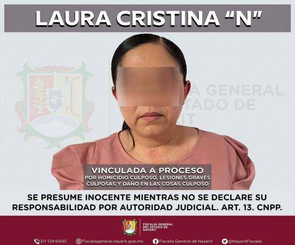 Tepic, Nayarit; 1 de mayo de 2025. ? La FiscalÃa General del estado de Nayarit informa que derivado de los hechos ocurridos el pasado 28 de marzo sobre el bulevar Gobernadores de esta ciudad, fue vinculada a proceso Laura Cristina N por su probable responsabilidad en los delitos de homicidio culpos...