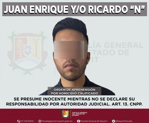 Elementos de la Agencia de Investigación Criminal de Nayarit cumplimentaron una orden de aprehensión contra Juan Enrique y/o Ricardo N. Lo anterior por su probable participación en hechos que la legislación vigente tipifica como delito de homicidio calificado, por hechos ocurridos el dÃa 13 ...