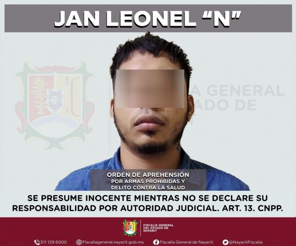 La FiscalÃa General del estado de Nayarit informa que elementos de la Agencia de Investigación Criminal ejecutaron dos órdenes de aprehensión en la ciudad de Tepic contra Jan Leonel N. La primera por su probable participación en hechos que la legislación vigente tipifica como delito de arma...