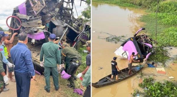 Un accidente de autobús de pasajeros en Camboya dejó el saldo de al menos 13 muertos y varios lesionados este jueves. De acuerdo con la información, el autobús viajaba desde Siem Reap hacia la capital Nom Pen cuando se estrelló desde un puente hacia un rÃo de la aldea de Chey Chumnas. Lo...