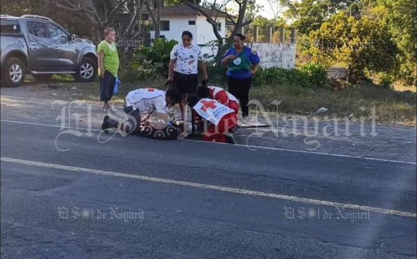 Un hombre fue atendido rápidamente por los paramédicos en la carretera 76 Tepic-Miramar derivado a un fuerte accidente que lo dejó malherido. Se refiere que el masculino fue embestido por un vehÃculo a la altura del panteón Jardines de San Juan. Ahà una motocicleta lo embistió brutalmente,...