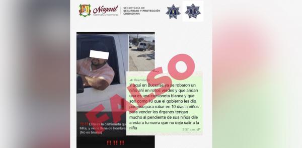 La SecretarÃa de Seguridad y Protección Ciudadana de Nayarit y la Dirección General de Seguridad Ciudadana de BahÃa de Banderas informan: Se ha detectado la circulación de audios, textos e imágenes en grupos de WhatsApp que alertan sobre presuntos casos de privación de la libertad de menor...