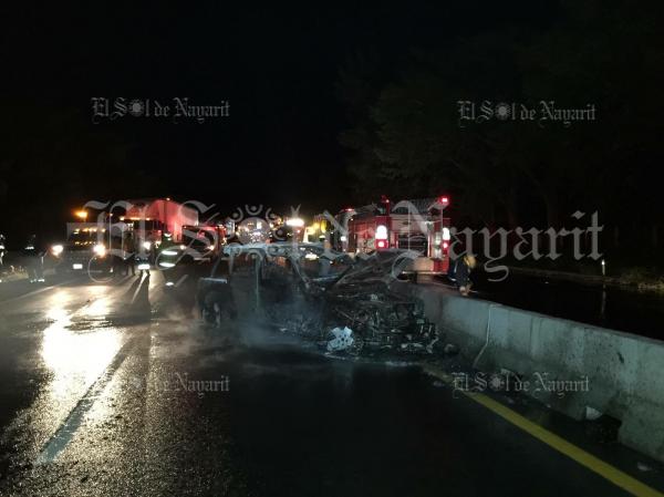 Poco antes de las 2:00 de la mañana de este sábado se registró un accidente en la Autopista Tepic-Villa Unión, donde una camioneta quedó totalmente calcinada. Los hechos se registraron cuando personas que pasaban por el lugar se percataron de que una camioneta Jeep tipo Warner se incendiaba ...