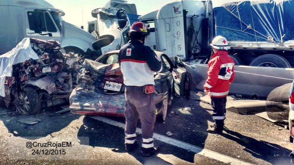 Se registró un accidente automovilÃstico en el que se vieron involucrados al menos 57 vehÃculos. Los hechos ocurrieron minutos después de las 9:00 horas del jueves en el kilómetro 7.6 del Circuito Exterior Mexiquense, en el municipio de Toloyucan, Estado de México. Hasta el momento se de...
