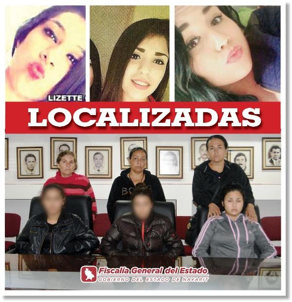 La FiscalÃa General del Estado de Nayarit (FGE), presentó a las tres jóvenes que eran buscadas desde el pasado jueves 19 de noviembre y brindó nueva información sobre su desaparición. Los padres de Arely Andrade López, de 18 años, Lizeth Carolina López Hernández de 17 y Cristina López ...
