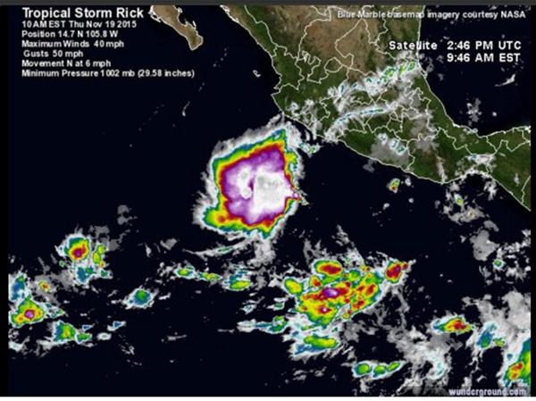 A las 09:00 horas tiempo del centro de México, la Depresión Tropical 21-E en el Océano PacÃfico, intensificó la fuerza de sus vientos y evolucionó a la Tormenta Tropical Rick; está aproximadamente a 505 kilómetros (km) al sur-suroeste de Manzanillo, Colima, y a 475 km al sur-suroeste de Punt...