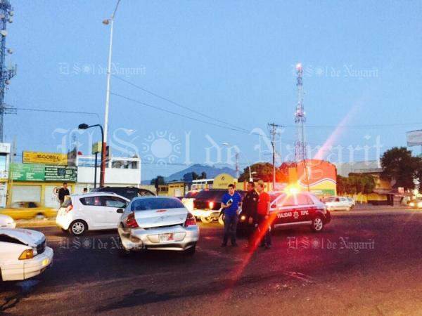 Un aparatoso accidente ocurrió la tarde de este sábado en la capital nayarita. Los hechos sucedieron sobre la Avenida Insurgentes, en el semáforo para ingresar al Boulevard Gobernadores. Un automóvil Chrysler Spirit color blanco terminó impactándose contra un vehÃculo 300M color platead...