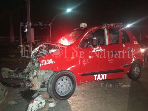Poco antes de las 10:00 de la noche se registró un fuerte accidente entre una camioneta y un taxi por Boulevard Tepic-Xalisco, a la altura de las banderas. Los hechos se registraron cuando el conductor de una camioneta Ford Lobo color tinto, identificado como José MartÃn DÃaz de 30 años de e...