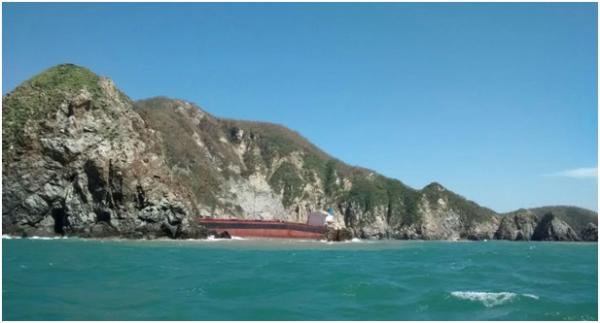 La ProcuradurÃa Federal de Protección al Ambiente (PROFEPA) atiende el encallamiento de un buque granelero en Barra de Navidad, Jalisco, el cual fue arrastrado a un banco de piedras tras el paso del huracán Patricia, dañándose el cuarto de máquinas, lo que provocó un derrame mÃnimo de hidroc...