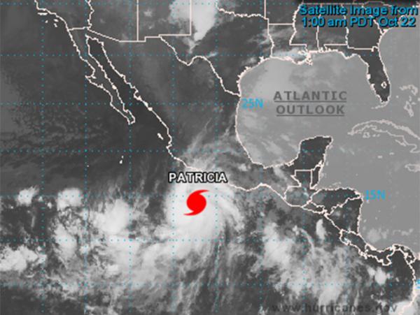 El huracán Patricia se ubicará a 365 kilómetros al sur-suroeste de Tecpan de Galeana, Guerrero, y mantendrá nublados densos con potencial de lluvias intensas con puntuales torrenciales en Guerrero y Michoacán, intensas en Oaxaca, muy fuertes en Colima y Jalisco, asà como fuertes en Nayarit. ...