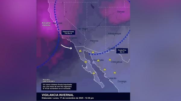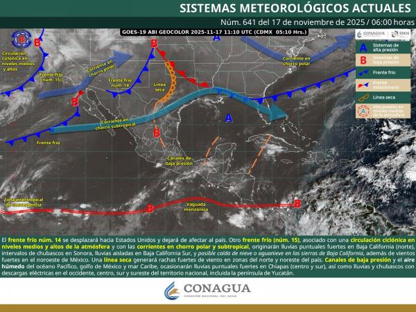 Hoy, se prevé que el frente frÃo núm. 14 se desplace hacia Estados Unidos y deje de afectar al paÃs. Sin embargo, otro frente frÃo (núm. 15) se aproximará al noroeste de México, asociado con una circulación ciclónica en niveles medios y altos de la atmósfera, y con corrientes en chorro po...