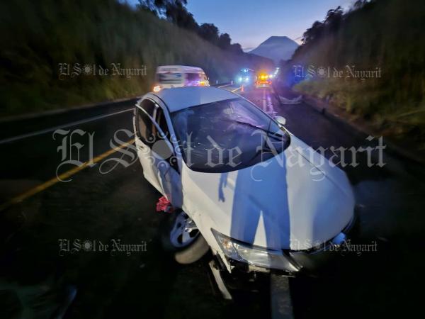 Este lunes se registró un nuevo percance en la carretera 76 Tepic-Matanchen, el cual dejó al menos dos lesionados. Se refiere que el conductor de un vehÃculo Honda Civic, color blanco, el cual presuntamente circulaba a exceso de velocidad, perdió el control del volante y se impactó contra el...