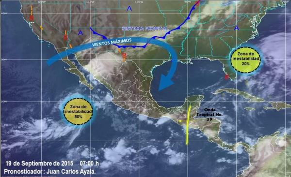 Al oeste-suroeste de Baja California sur una zona de inestabilidad con potencial de desarrollo ciclónico causará nubosidad con potencial de lluvias puntuales torrenciales en Baja California Sur; intensas en Sinaloa y Nayarit; muy fuertes en Sonora; y fuertes en Baja California. El Servicio Mete...