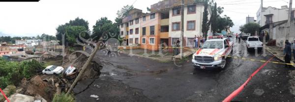 Esta tarde ocurrió un deslave en la calle Esteban Baca Calderón, de la colonia Caja de Agua, en Tepic, resultando afectados dos automóviles que se encontraban estacionados. El incidente ocurrió minutos después de las 17:00 horas de este viernes, cuando parte de la calle pavimentada se vino a...