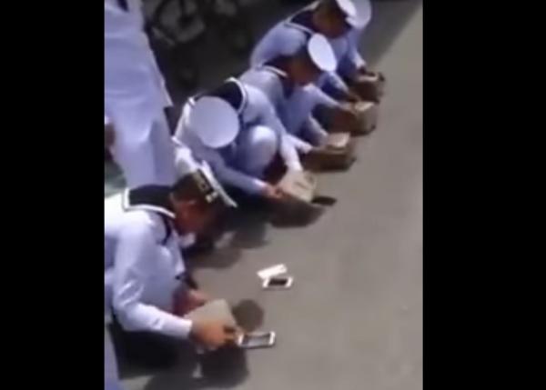 Se ha vuelto viral en redes sociales un video donde se observa a un grupo de marineros de Tailandia destrozando sus teléfonos celulares, presuntamente como castigo. En el video los marineros se encuentran alineados en fila, con sus respectivos teléfonos tendidos en el piso. Un hombre cuestio...