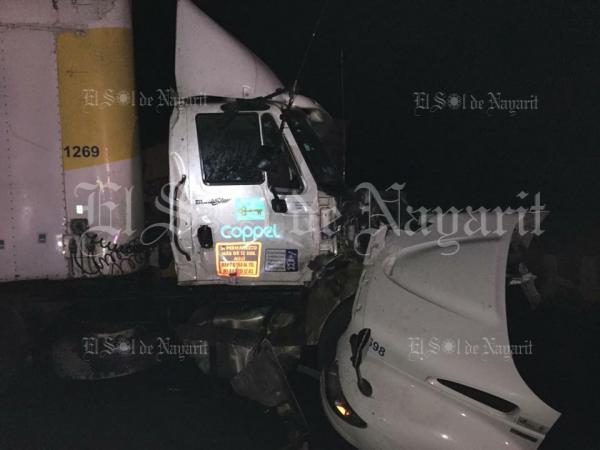 Un fuerte accidente de tránsito se registró la noche de este miércoles en la autopista Tepic- Villa Unión, donde se vieron involucrados tres vehÃculos pesados. Los hechos se registraron donde se encontraba anteriormente la antigua caseta del pichón, donde un tráiler de la paqueterÃa red ...