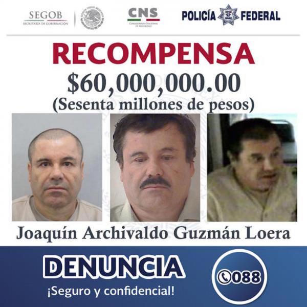 Autoridades federales informaron que se repartirán carteles en las carreteras del paÃs con información y fotografÃas de “El Chapo”, con la finalidad de lograr su recaptura. Los folletos tendrán tres fotografÃas de JoaquÃn Guzmán Loera junto con la leyenda “se ofrece una recompensa de 6...