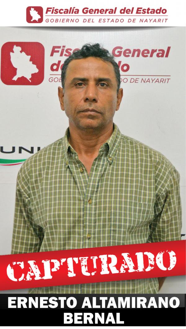 La FiscalÃa General del Estado, dio a conocer que derivado de un operativo de Prevención del delito, elementos de la PolicÃa Nayarit realizaron la captura de un sujeto por el delito de Portación de Arma de Fuego. El detenido responde al nombre de Ernesto Altamirano Bernal y/o Eliseo Cataño ...