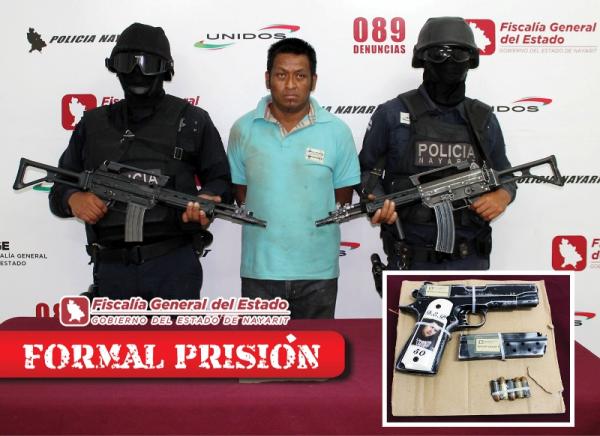 FiscalÃa del Estado informó que el Juez Cuarto de primera instancia del ramo penal con sede en Tepic, dictó auto de Formal Prisión en contra de un sujeto por los delitos de Privación de Arma Prohibida y Portación de Arma Prohibida. El detenido responde al nombre de Guido Juárez Mendoza ali...