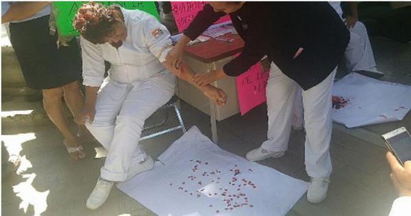 Enfermeras del Sector Salud de Oaxaca protestaron afuera de las oficinas centrales de la SecretarÃa de Salud del estado; exigÃan la recontratación de personal en diferentes áreas. Las enfermeras, asà como otros empleados del sector salud, se desangraron en la vÃa pública como protesta. ...