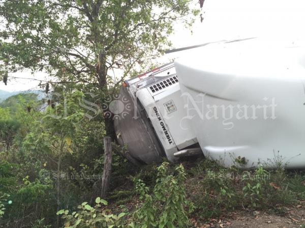 Poco antes de las 6:00 de la tarde de este domingo se registró una aparatosa volcadura de un tráiler en la carretera libre Tepic-Mazatlán. Los hechos se suscitaron cuando el tráiler color blanco de la marca International con placas 301-DU-8, circulaba por la carretera en mención, desafortuna...